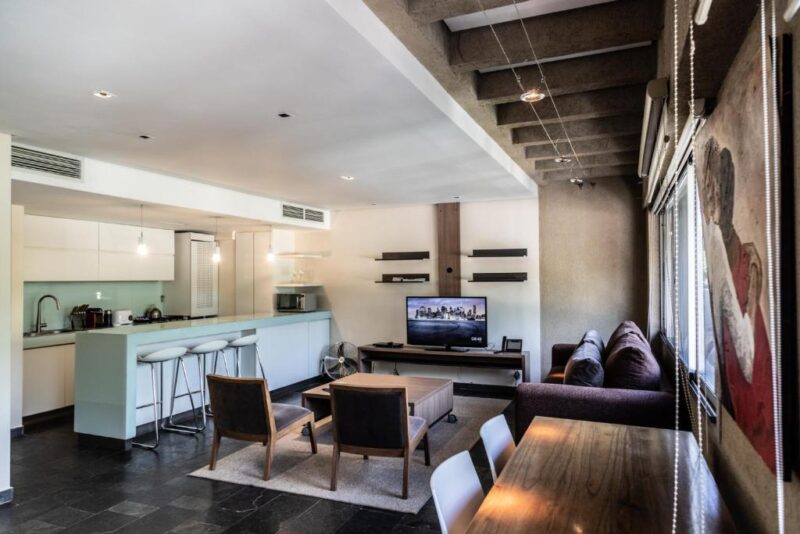 Ubicado en Olascoaga 770, Mendoza, Argentina, es perfecto para quienes buscan alojamiento Con Balcón, Con Terraza, Con Cocina, Con Jacuzzi, Con Aire Acondicionado.
